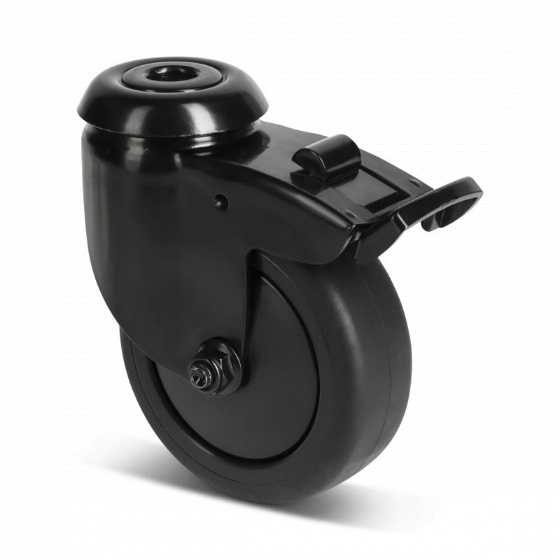 Czarne kółko obrotowe z hamulcem 75 mm - łożysko kulkowe - otwór na śrubę - 75 kg