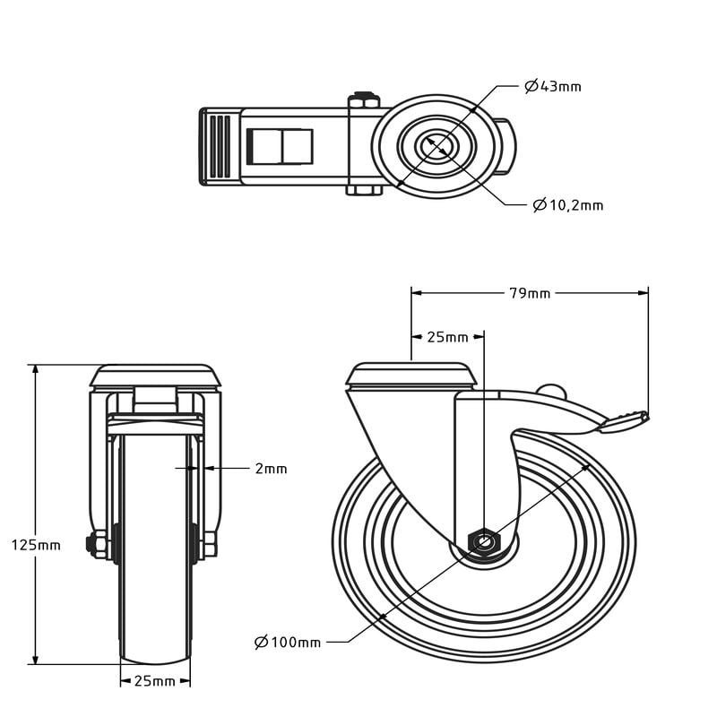 - Średnica koła: 100 mm
