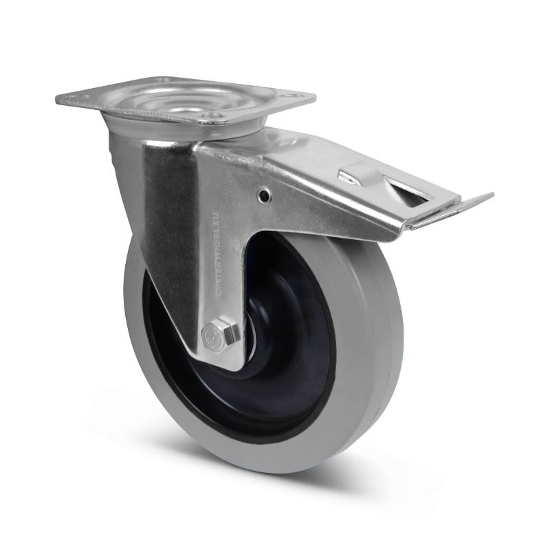 Elastyczne gumowe kółko obrotowe z hamulcem 200 mm z łożyskiem kulkowym i płytką - 400 kg