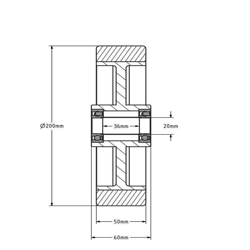 Kółko gumowe 200 mm - otwór łożyska kulkowego 20 mm - 400 kg