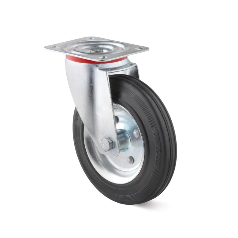 Gumowe kółko obrotowe 200 mm z łożyskiem tocznym, stalowa felga i płyta - 205 kg