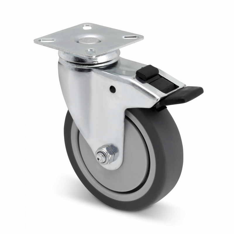 Gumowe kółko obrotowe z hamulcem 100 mm z płytką - 80 kg