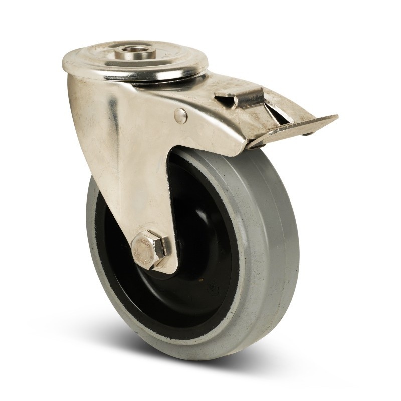 Kółka obrotowe ze stali nierdzewnej z hamulcem 125 mm - Elastyczna guma - 190 kg