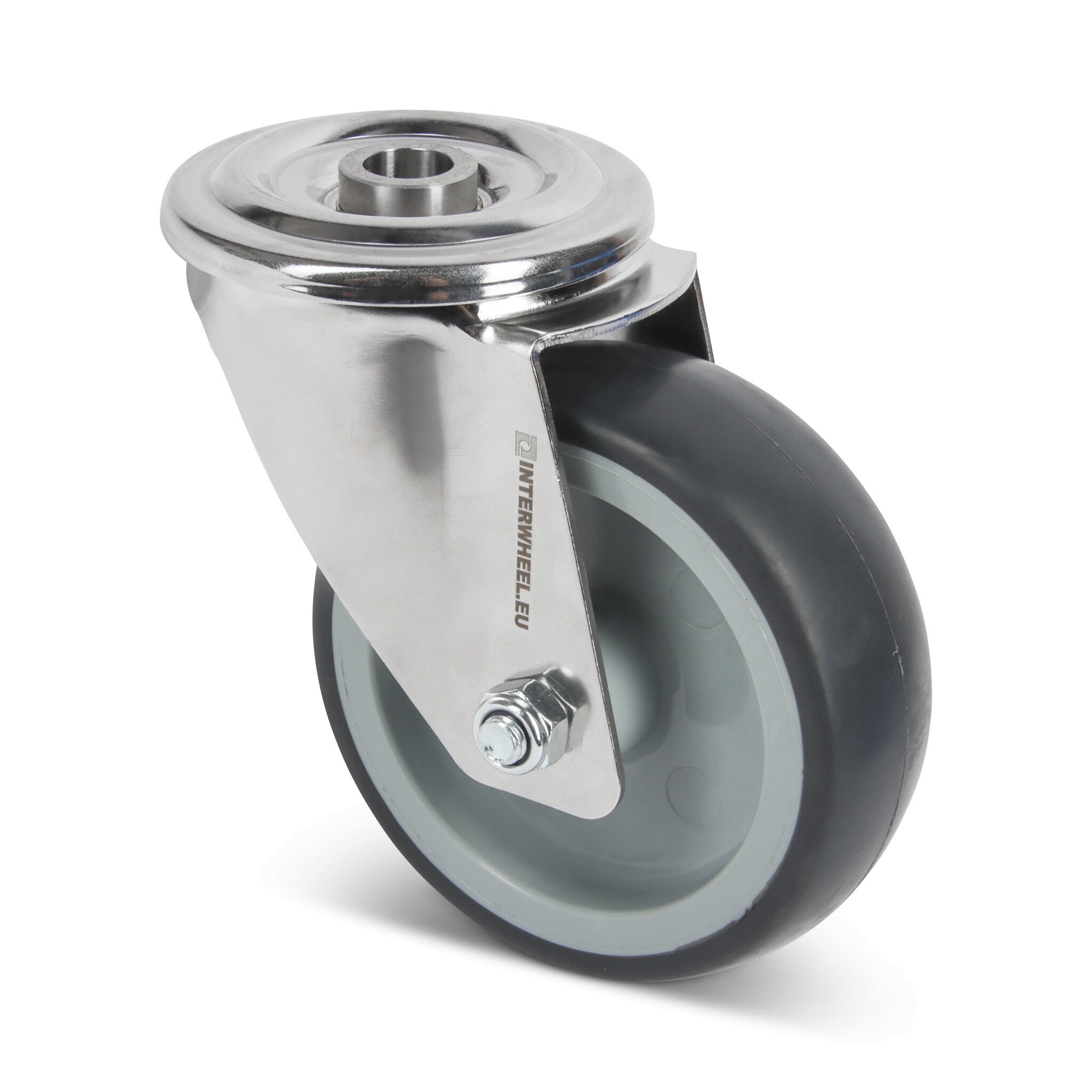 Kółko obrotowe ze stali nierdzewnej 100 mm gumowe z otworem na śrubę m12 - 100 kg