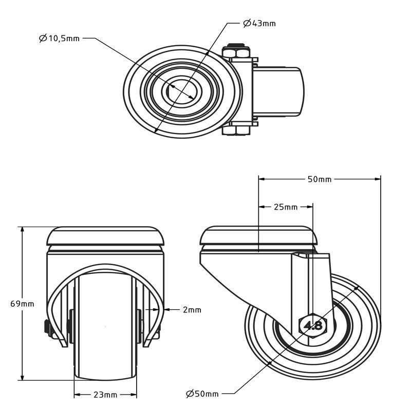 Gumowe kółko obrotowe 50 mm z otworem na śrubę m10 - 50 kg