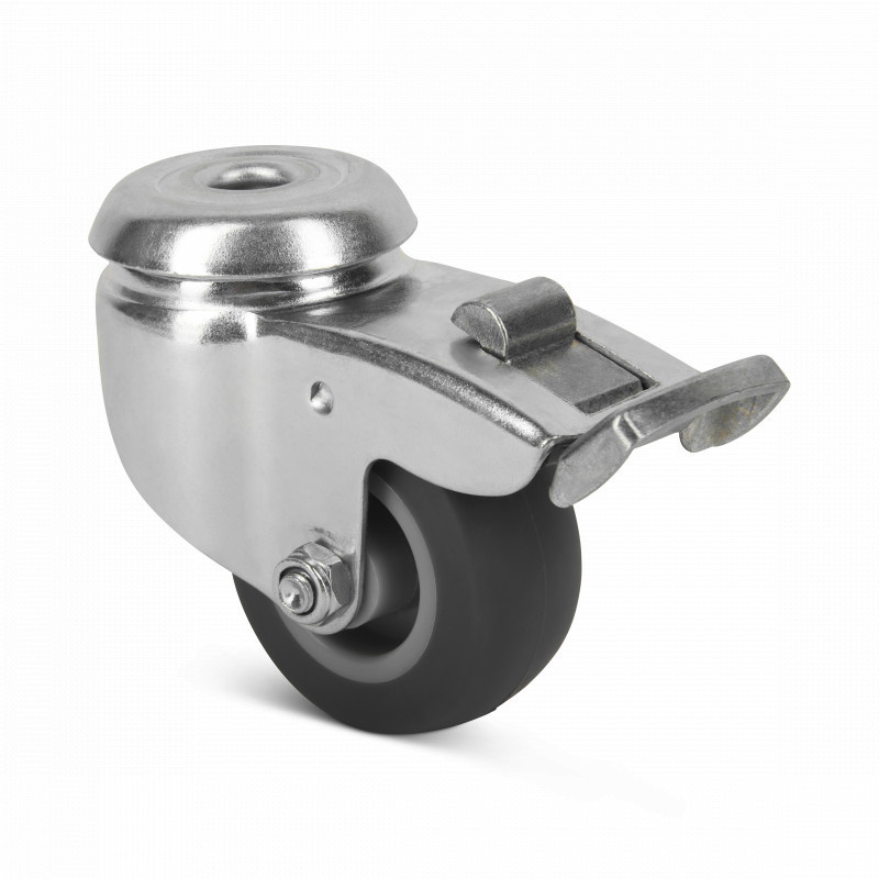 Gumowe kółko obrotowe z hamulcem 50 mm - otwór na śrubę - 50 kg