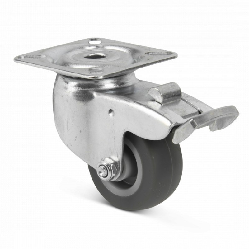 Gumowe kółko obrotowe z hamulcem 50 mm z płytką - 50 kg