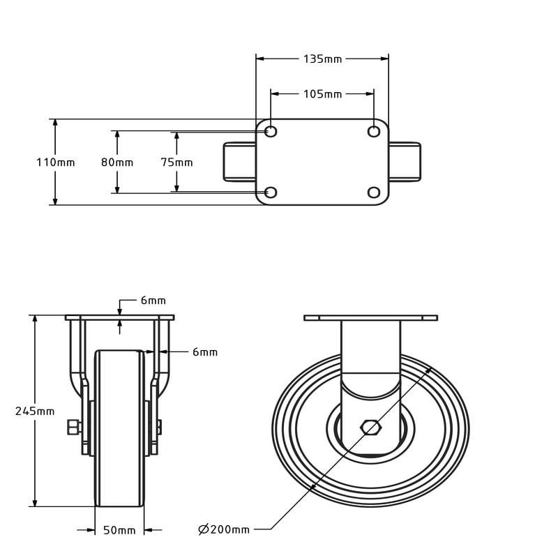 Kółko stałe kubełkowe 200 mm składa się z bardzo wytrzymałego widelca spawanego ze stali połączonego z solidnym żeliwnym kółkiem poliuretanowym. Kółka stałe żeliwne spawane stalą szczególnie dobrze nadają się do ciężkich zastosowań, które są prowadzone po nierównych powierzchniach, mają wysokie ryzyko kolizji z wózkami widłowymi lub są używane w bardzo trudnych warunkach, gdzie ryzyko awarii musi być zerowe.