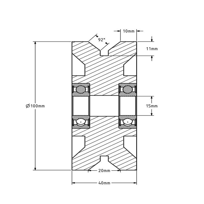 Koło z rowkiem łożyskowym 100 mm stalowe z rowkiem V - 600 kg (krążek linowy)