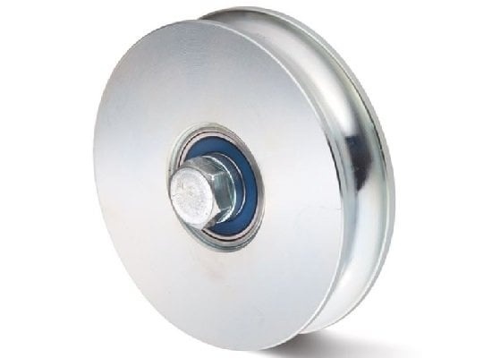 Koło rowkowe wykonane ze stali (ocynkowane) z 2 łożyskami kulkowymi (6304 2RS).