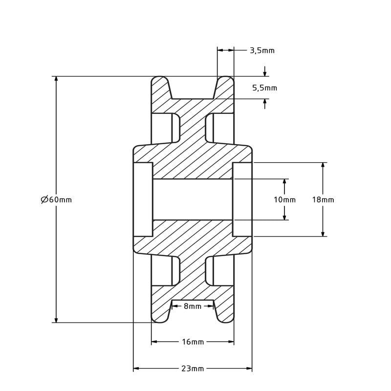 Koło rowkowane 60 mm z kwadratowym rowkiem - 30 kg