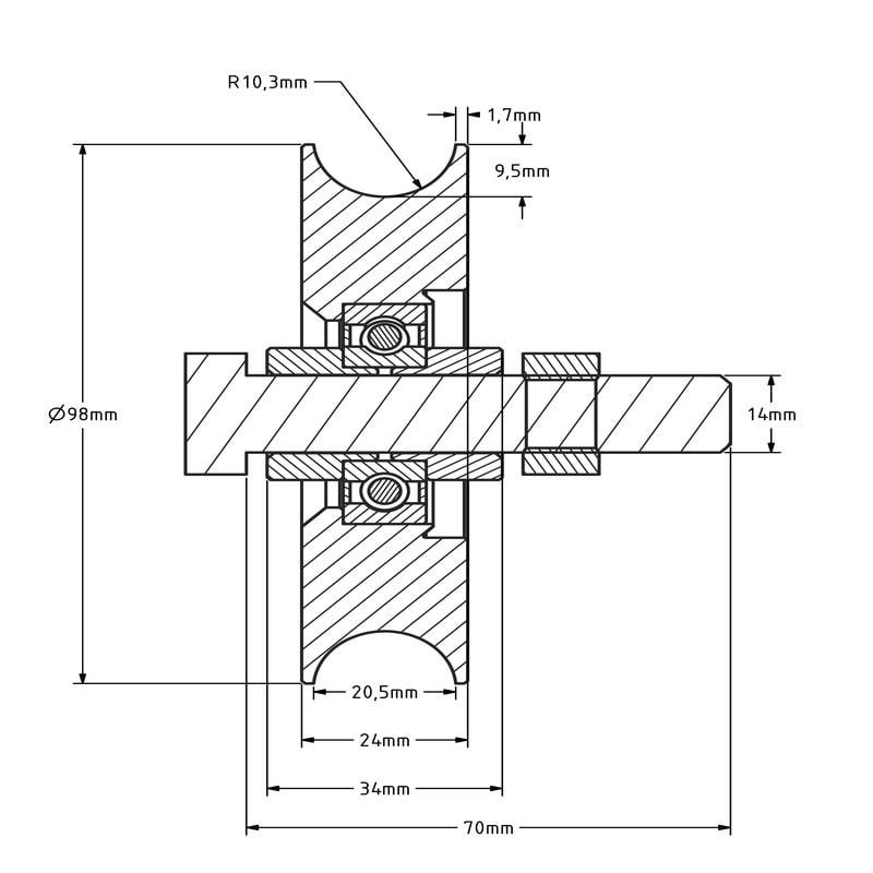Koło rowkowe wykonane ze stali nierdzewnej (stal nierdzewna - inox) z 1 łożyskiem kulkowym.