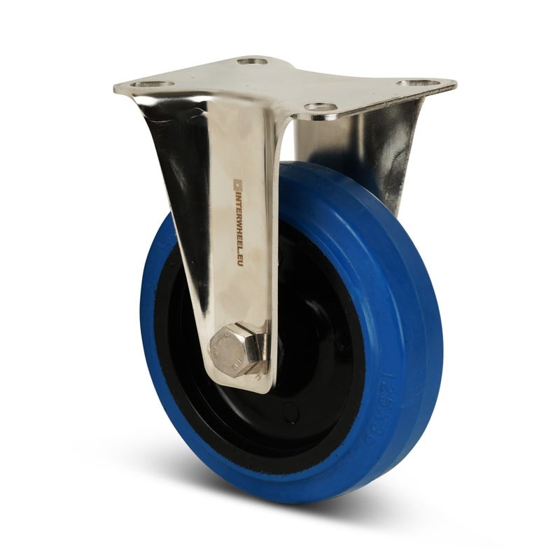 Kółko stałe ze stali nierdzewnej 125 mm z niebieską elastyczną oponą gumową