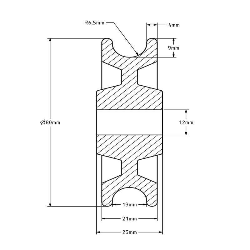- Promień rowka: 6,5 mm