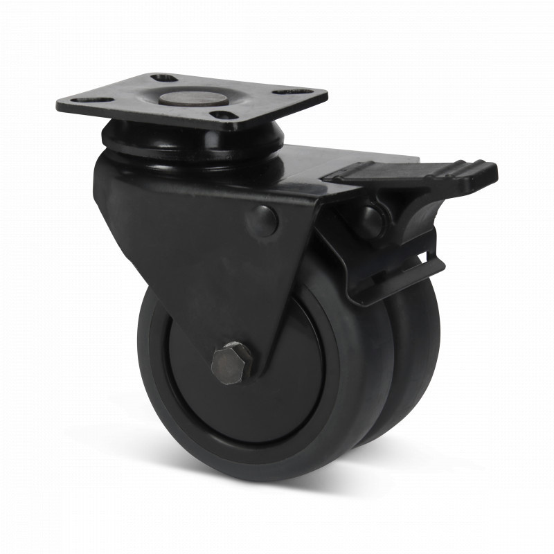 Podwójne czarne kółko obrotowe z hamulcem 75 mm - płytka - 100 kg