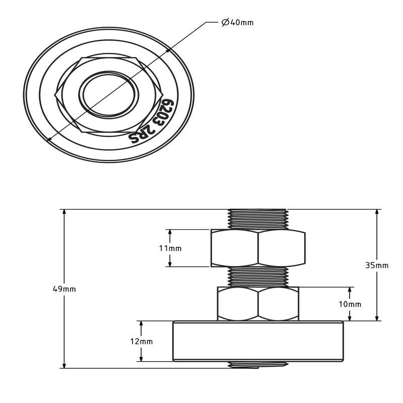 Rolka prowadząca 40x12 z łożyskiem kulkowym - 200 kg