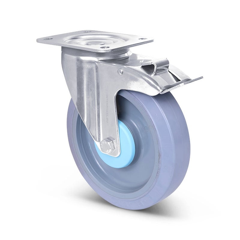 Stal nierdzewna Kółko obrotowe z hamulcem 200 mm guma z łożyskiem kulkowym i płyta - 400 kg