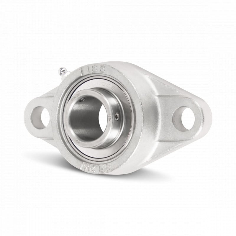 Blok łożyska kołnierzowego ze stali nierdzewnej / Inox, owalny z 2 otworami montażowymi.