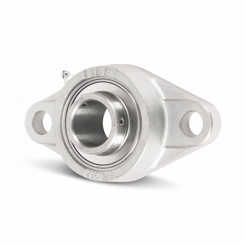 Blok łożyska kołnierzowego ze stali nierdzewnej / Inox, owalny z 2 otworami montażowymi.