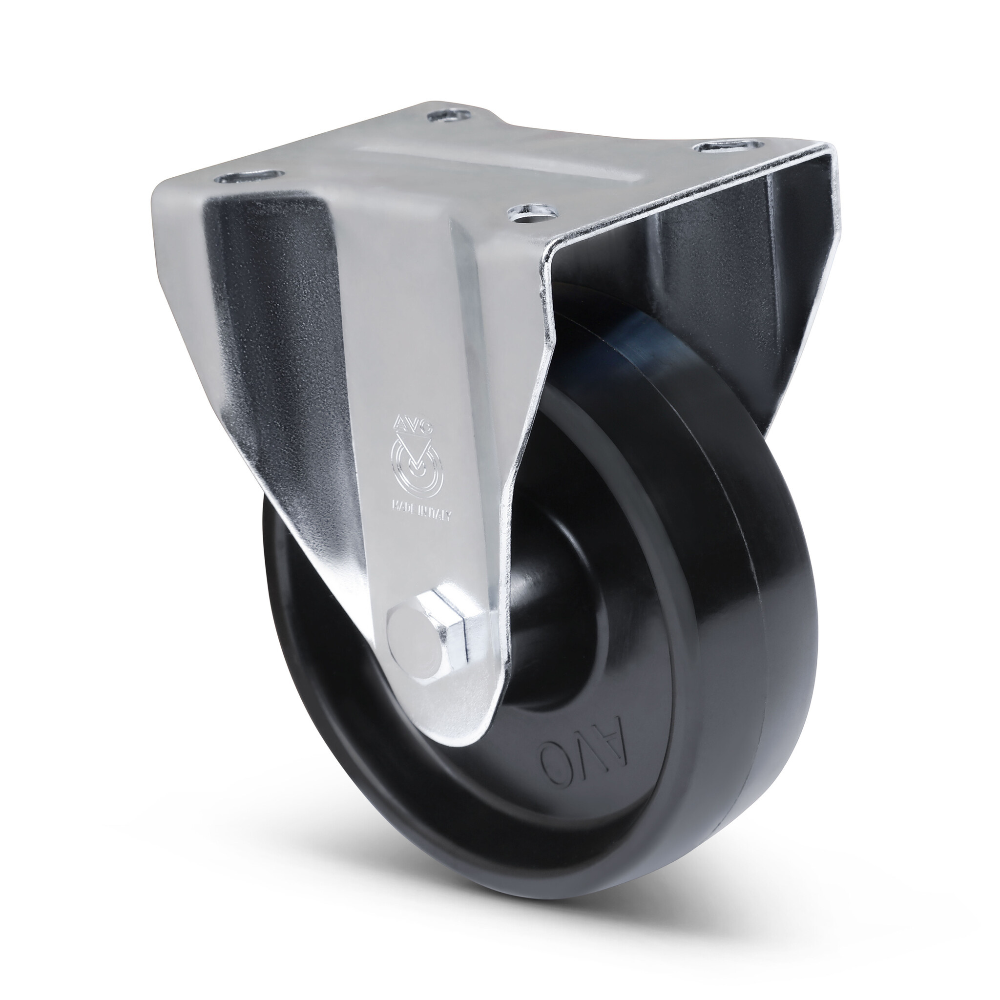 Żaroodporne kółko stałe z mocowaniem płytkowym.