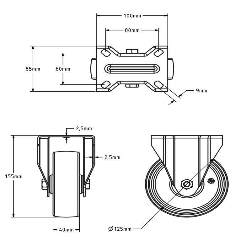- Średnica koła: 125 mm