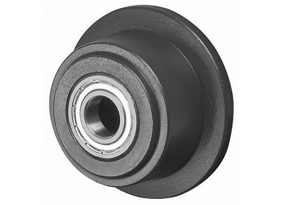 Żeliwne koła kołnierzowe (GG) z łożyskami kulkowymi.
